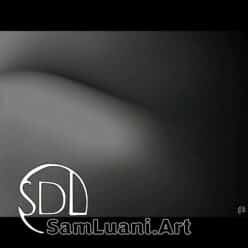 Beveled Skin | Abstract image with a smooth gradient of gray shades, transitioning from bright to dark. A darker, curved shadow-like area appears in the center, creating a subtle sense of depth. The signature ‘SDL’ is positioned in the bottom right corner.