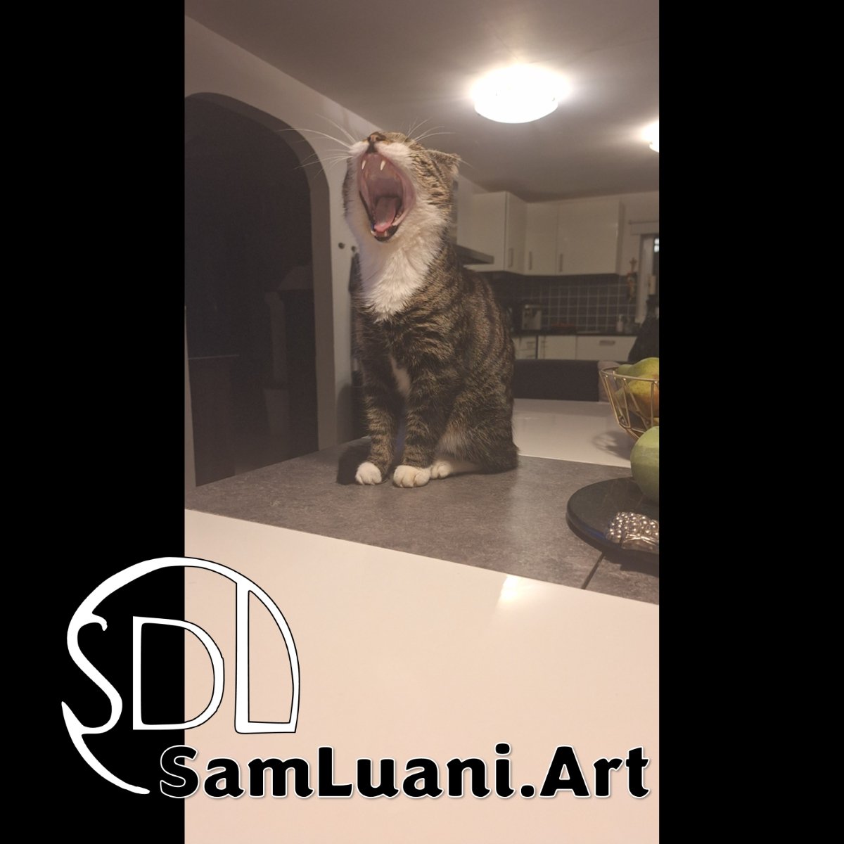 And finally, the Real Thing. The yawn itself, majestic and unrepeatable. It is not biology, not fatigue, but performance. A culmination of tension, forgiveness, and ritual. The Deep Look prepared the ground, the Ladies and Gentlemen charmed the audience, and now the masterpiece arrives. His mouth opens, his body arcs, and time itself pauses. This is more than yawning art. It is testimony, Leo’s gift to the archive, to me, and to you. When it is over, I know the lesson is complete: art is not convenience, it is devotion. And Leo, my co-author, has once again reminded me of my place — not above him, but beside him.