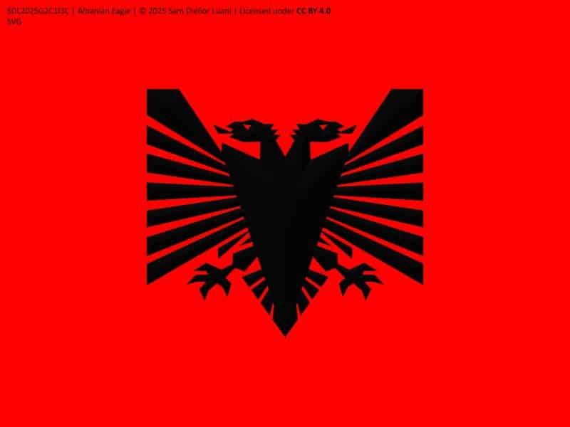 Alt txt | A couplet of old geometric stylizations of the eagle of the Albanian flag, by Sam Diellor Luani